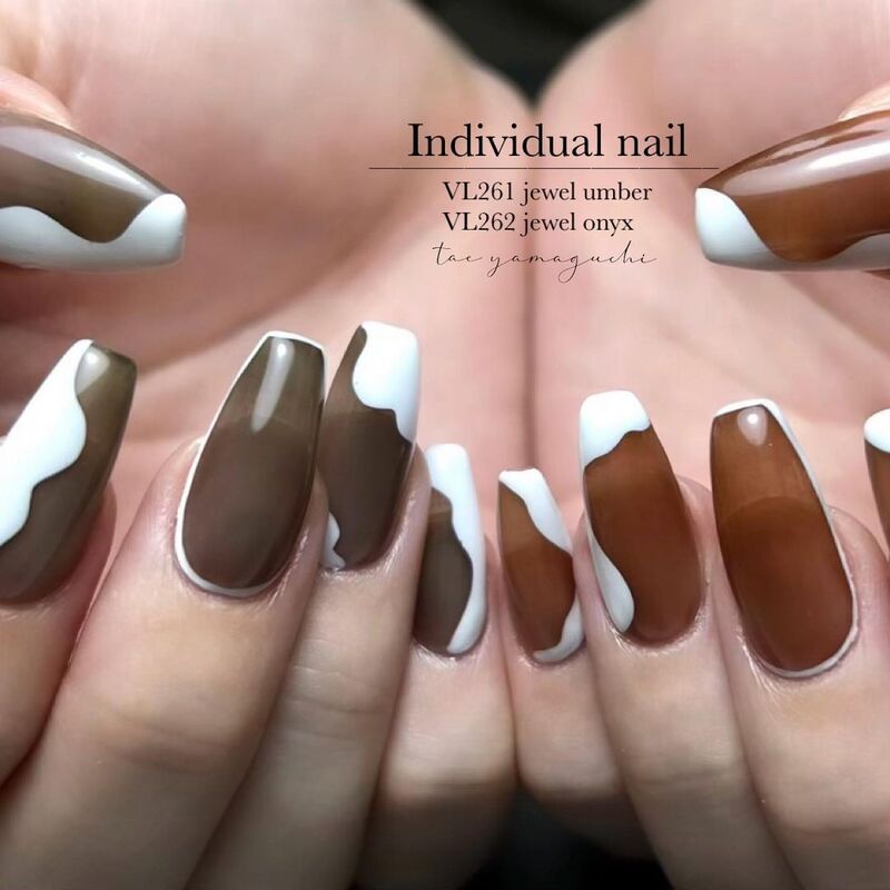 単色でも十分ステキで上品ネイルできますが、ジュエルシリーズのオニキスやトパーズを使ってべっ甲チックにしたり色々と楽しめるカラーです。