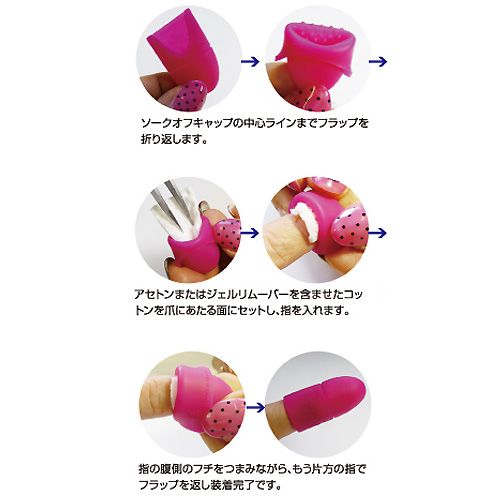 指につけてみたところピタッと密着。いいかも。セルフでオフは苦手なので。ただ両手でお手頃価格で商品を作ってくれたらいいのに。他のサイトよりはお安いようですが。