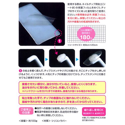 ネイルチップの裏側にくっつけ、チップスタンドやジグなど貼りたい場所に固定できます。