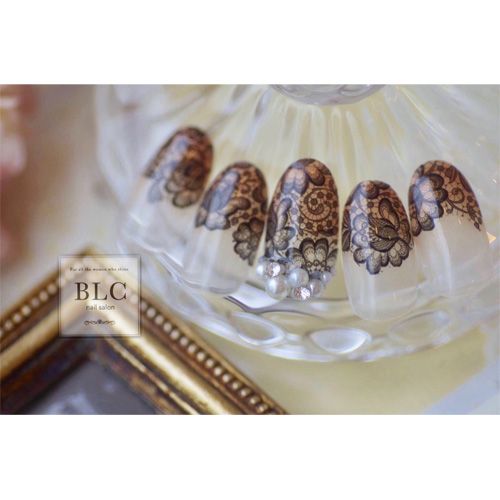 本当に繊細でとても美しいです。レースの柄にも濃淡があり、スタンプでは代用できません。未硬化ジェルの上に乗せればいいのでとても楽です。強いて言えばたぶん熱で丸まってしまうので、そこは注意が必要です。