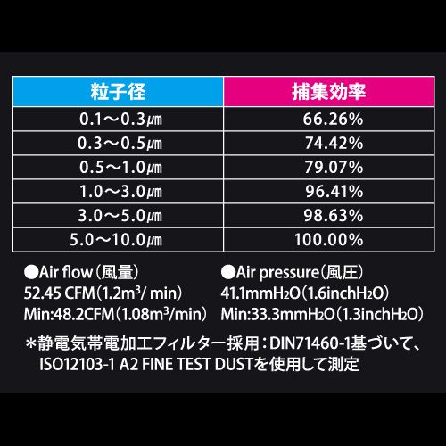 静電気帯電加工フィルターによりPM2.5レベルの粒子を96.41%カット!ネイリストの健康を守ります。