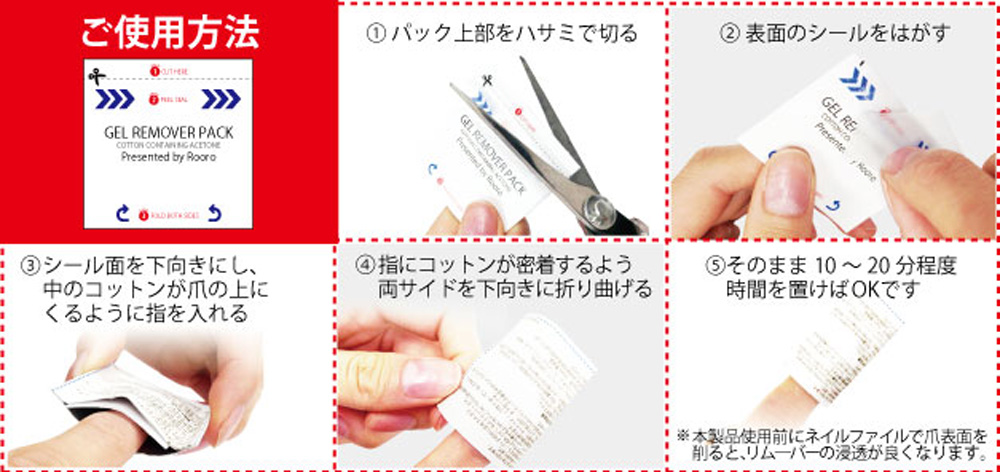ジェルネイルのオフの際に必要なアイテムが1つになったパックです。