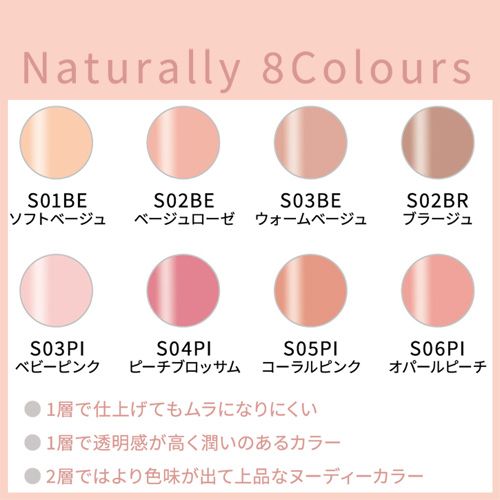 第2弾は春らしいヌーディーカラーの8色!抜け感のあるカラーは上品に仕上がり、爪とお肌を美しく演出します。