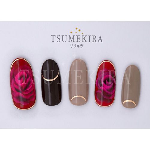余白が無いラインテープと三日月ラインが先細りになった組み合わせのネイルシールです。