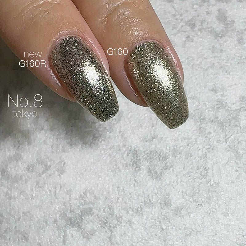 ※リニューアル情報…「G160」は「G160R」にリニューアル致しました。G160よりさらにグリッターの輝きが増しておりシルバー寄りになりました。輝きの美しいグリッタージェルです。ラメラインにも適しています。