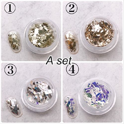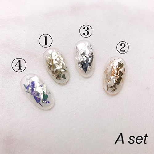 ブロンズ 、シャンパンゴールド、シルバー 、 オーロラホログラムの乱切りセット。