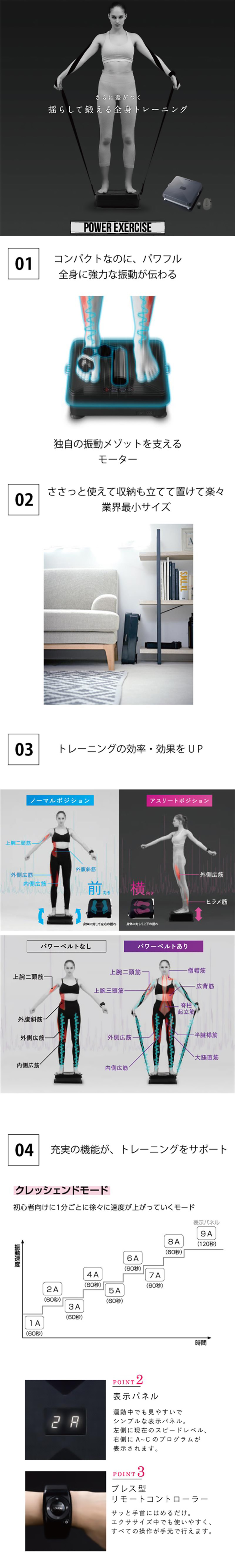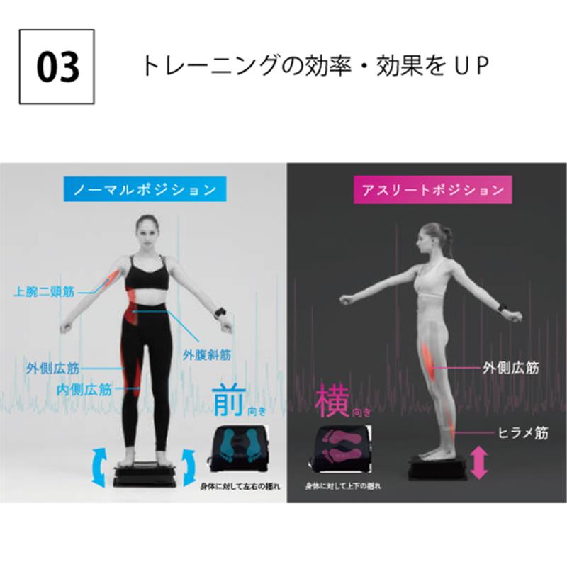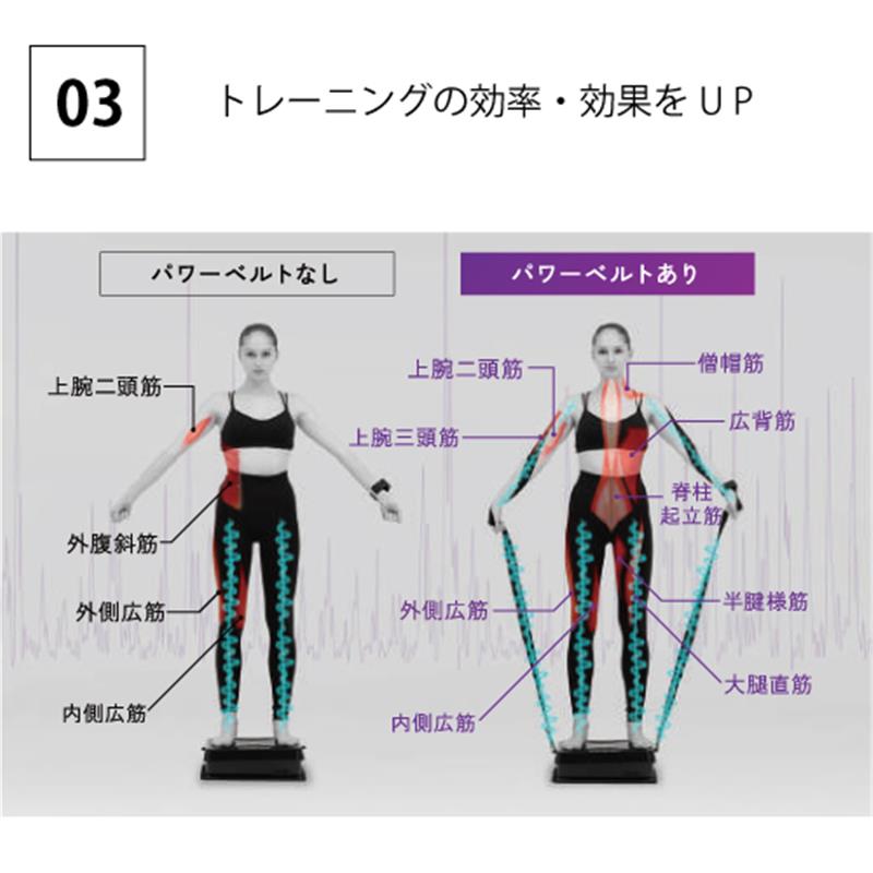 引っ張る力でエクササイズする一般的なゴム製ベルトとは違い、あえて伸縮しないベルトを採用。振動を減衰することなく全身にめぐらせることで、エクサイズ効果はさらに高まります。
