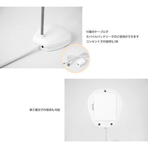 ●単3電池、USB接続電源(モバイルバッテリーなど)、AC電源アダプターの3つの電源が使用可能