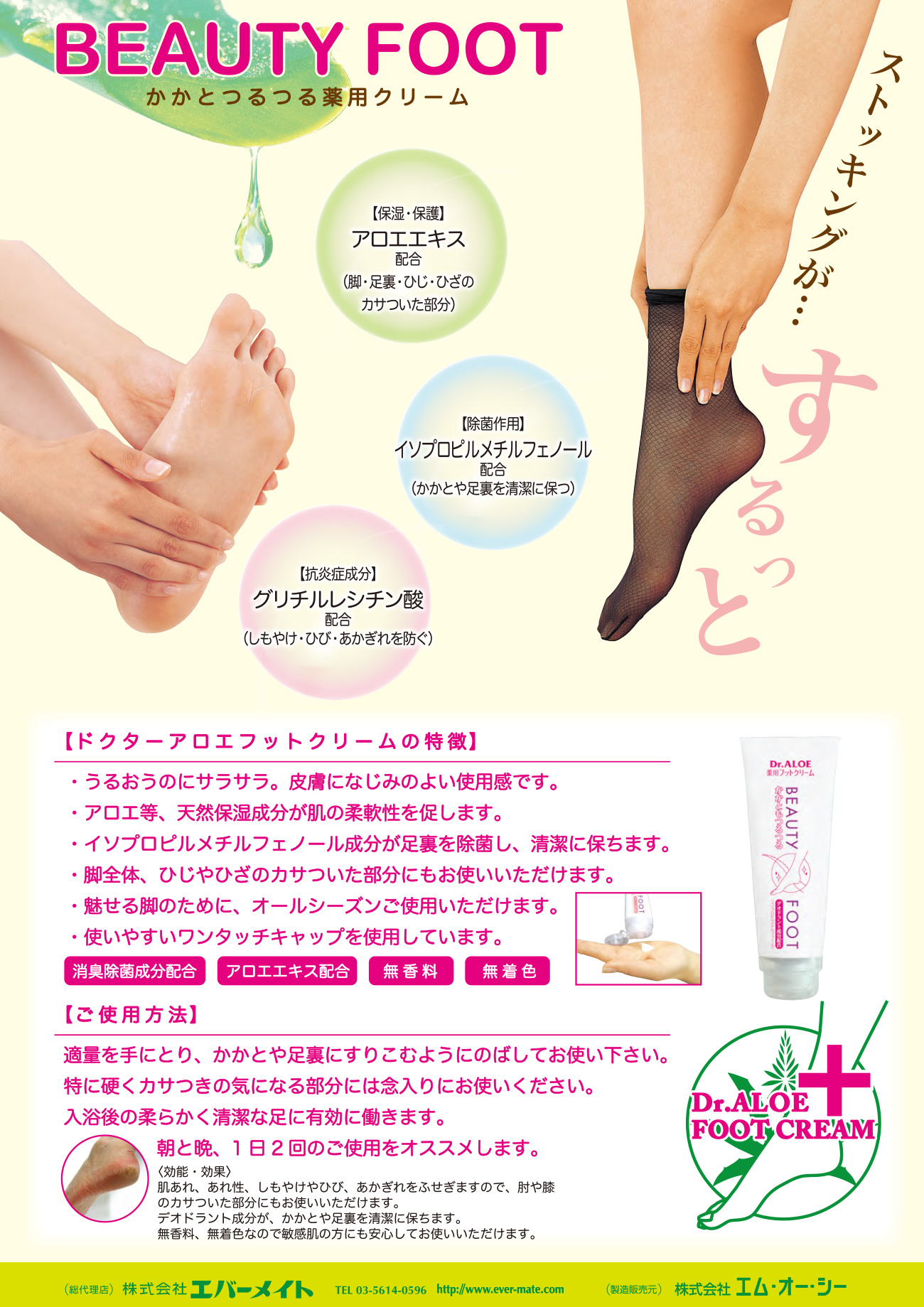 脚全体のカサつき、かかとや足裏のひび割れた部分などにご使用ください。アロエエキスをはじめとする植物成分が乾燥や紫外線で荒れた足に潤いをたっぷり与えます。ベタつかず、皮膚にスッとなじみ、柔らかくスベスベの美しい脚に整えます。