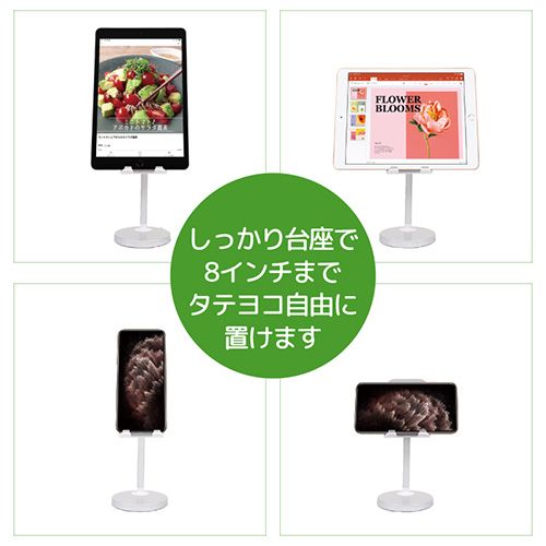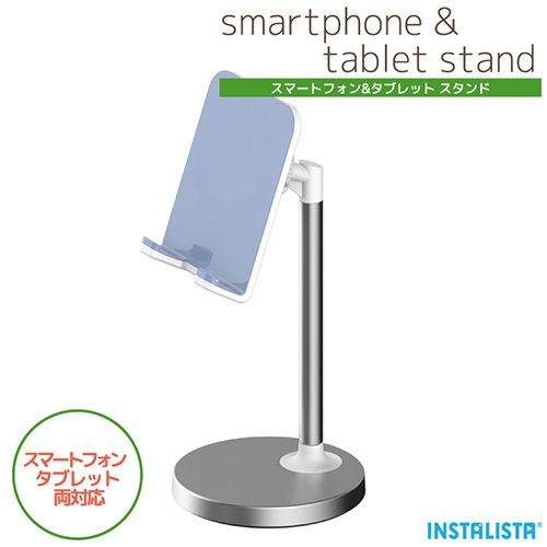 配信に便利なINSTALISTA/インスタリスタ♪省スペースタブレットスタンド!お好みの角度で固定できるからレシピを見ながらのクッキングやリラックスタイムの動画鑑賞に最適♪台座は高級感のあるアルミニウム合金。シンプルなデザインでインテリアの邪魔をしません。