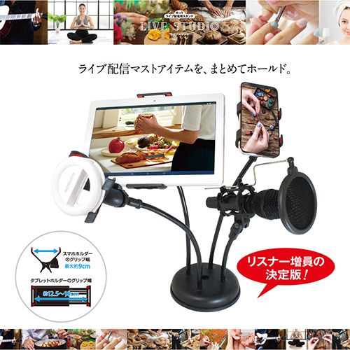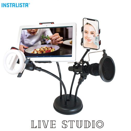 配信に便利なINSTALISTA/インスタリスタ♪ライブ配信に必要なアイテムをまとめてホールド!配信に便利な4つのマストアイテムをコンパクトに機能的にホールドしてくれるスタンドです。フレキシブルアームで配信時のレイアウトに合わせた見やすい位置・角度に設置が可能。今日からプロ級ライブ配信!