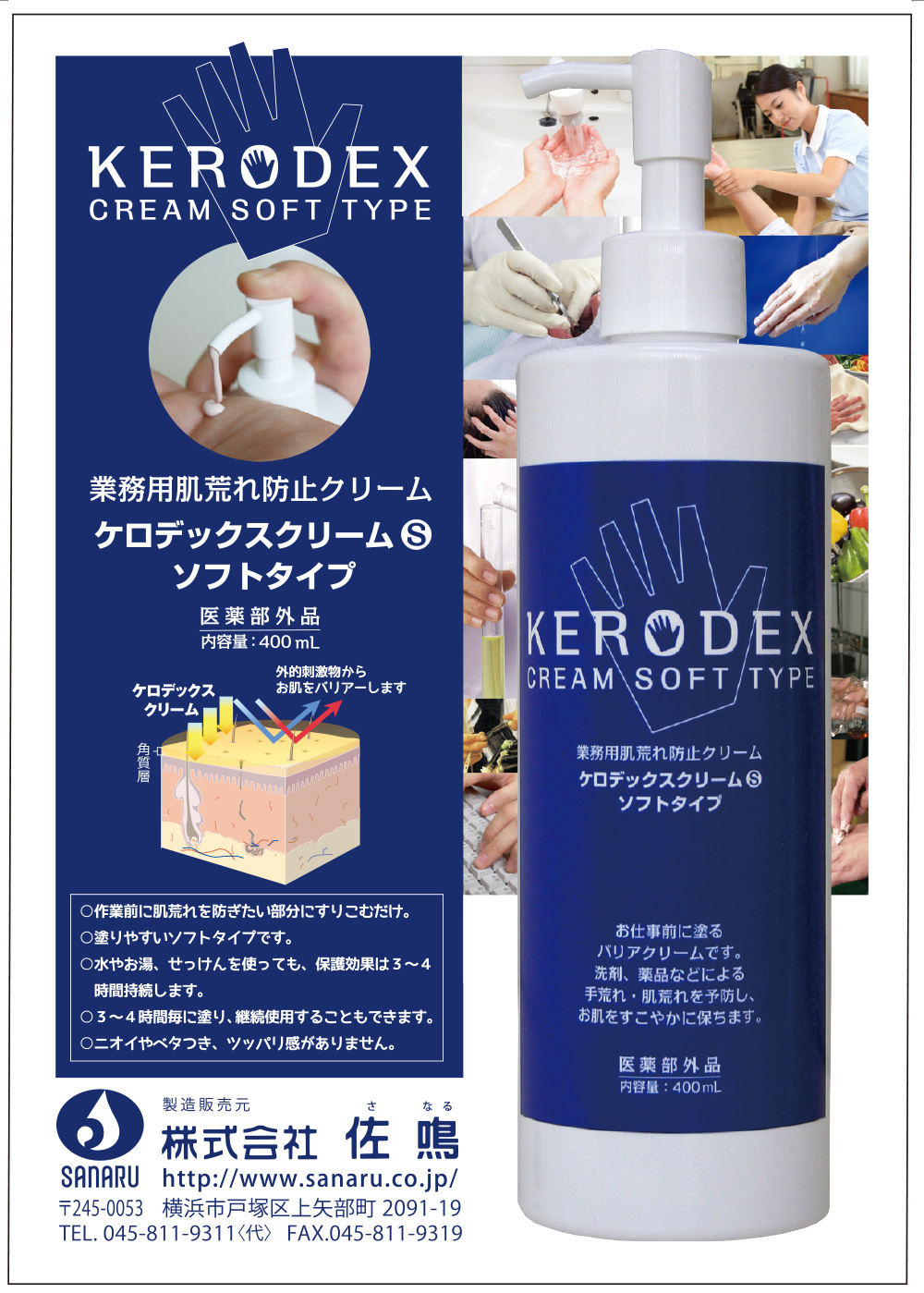 「バリアクリーム」であるケロデックスは、お仕事前に塗っていただき、刺激物から皮ふを保護することを目的としています。