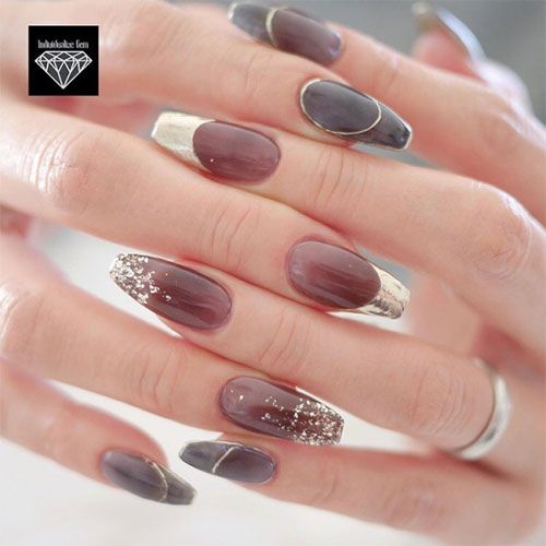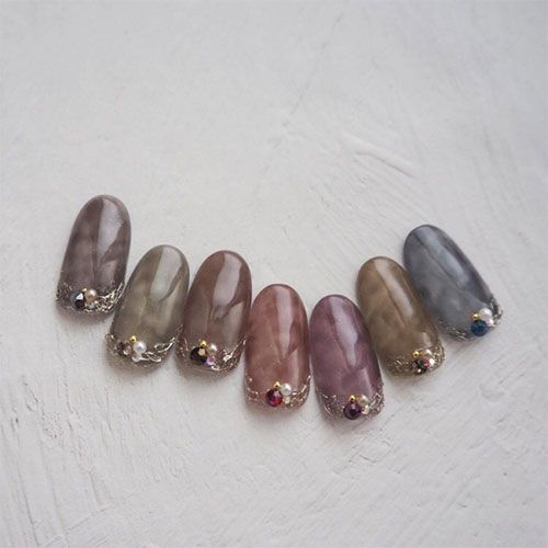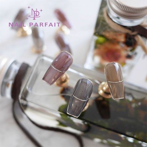 セピアカラーがネイルベッドの色と重なり合い、オレンジブラウン寄りのカラーに仕上がります。