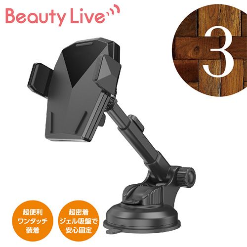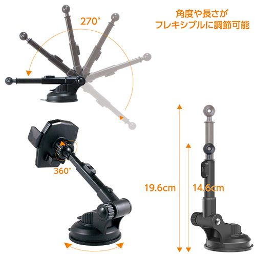 密着ジェル付き超強力吸盤でしっかり固定。角度や高さ・長さがフレキシブルに調節可能。
