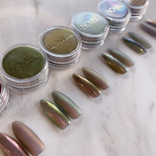 あまり見たことないカラーのミラーパウダーです。マットコートするとまた表情が変わりました。