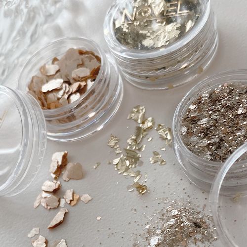 シェルと組み合わせたり、ラメフレンチの上にアクセントにして輝きを出したり、ワンカラーの根元や先端などにワンポイントに配置して頂くだけで上品なデザインに仕上がります。
