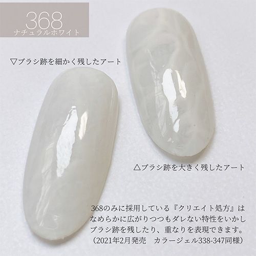 ※368のみ、なめらかに広がりつつもピタっと留まり ブラシ跡を残したアートや凹凸を出しやすい「クリエイト処方」。