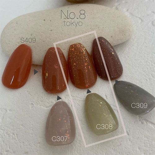 スモーキーカラーのくすみ具合・複雑な中間色・シアーカラーの透け感・偏光パール・ユニコーングリッターのホログラフィックなどトレンドカラーが豊富です。