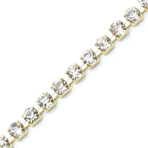 ゴールドラインストーンチェーン クリスタル 2mm【ゆうパケット】
