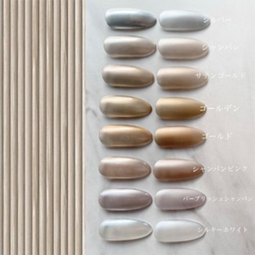 ダズルミラーセレクションの仕上がりの違いは商品画像カラーサンプル各色 左(トップジェル)、右(マットトップジェル)をご参照下さい。
