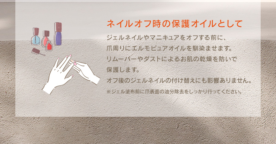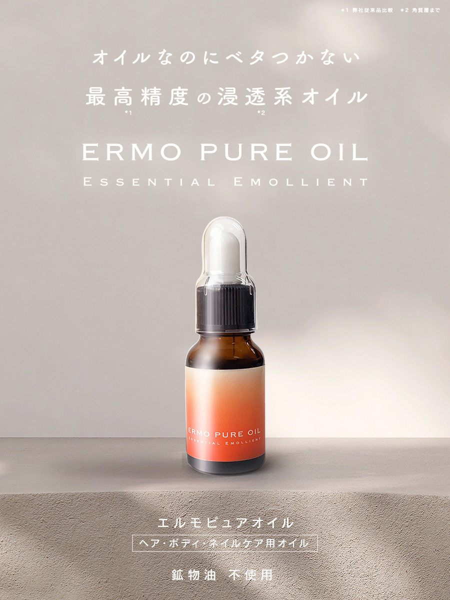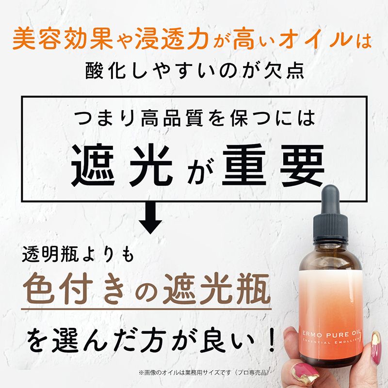 石油を原料とする鉱物油は一切使わず、100%植物油を使用していますので、お顔にも安心してお使いいただけます。 お肌が乾燥気味の方は、今お使いの乳液やクリームにエルモピュアオイルを2~3滴加えてお使いください。