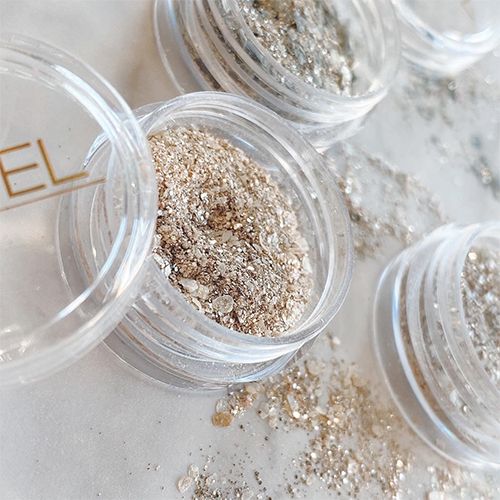 白いつぶつぶみたいなのがラメに混じってて冬っぽいラメかな?ニュアンスに使用したらめっちゃおしゃれなネイルになりました。
