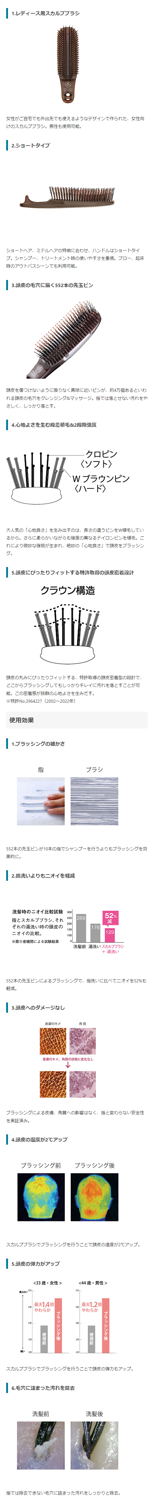 特許取得の頭皮密着設計スカルプブラシ