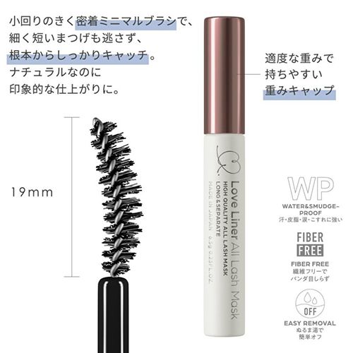 ・短いまつげにも塗りやすいミニマルブラシ×塗り重ねてもダマにならない繊維フリーのマスカラ液で誰でも簡単にプロ級の仕上がりに。