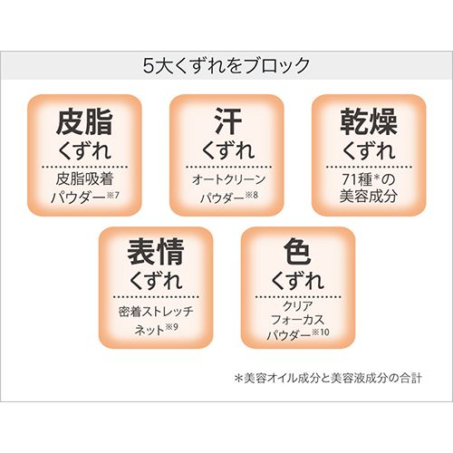 メイクくずれの原因を徹底的に防いで、つけたての美しい仕上がりが長時間持続します。