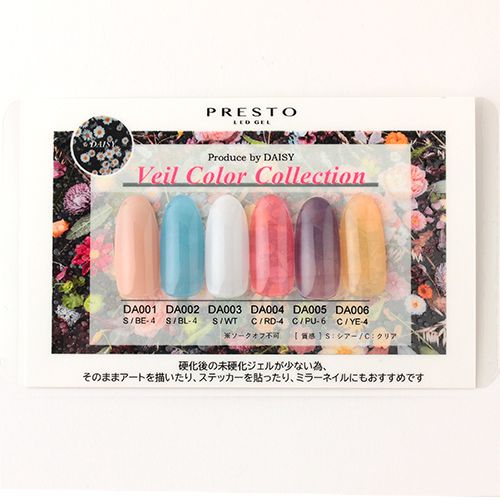 繊細なヴェールを被せるようにほんのり色付くシアーカラーで、ベースカラーには勿論、アートの上にヴェールの様に一層コーティングすることでアートに深みをプラス。