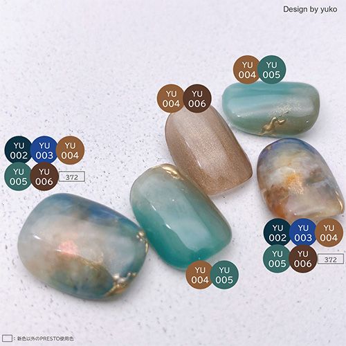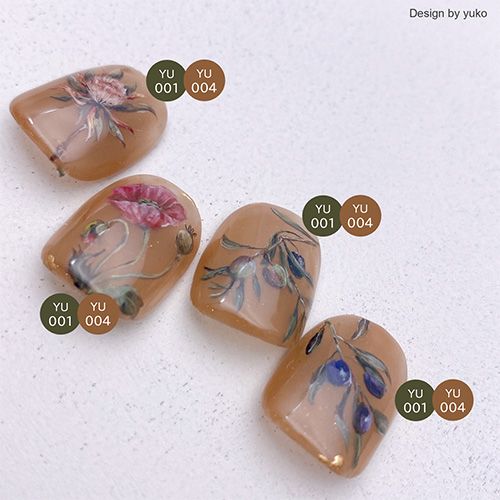 重ねることで表情を変える深みのあるシアーカラーと植物を描くのに特化したアートカラーの組み合わせで、ニュアンスアートから繊細な手描きアートまで幅広く使えます。