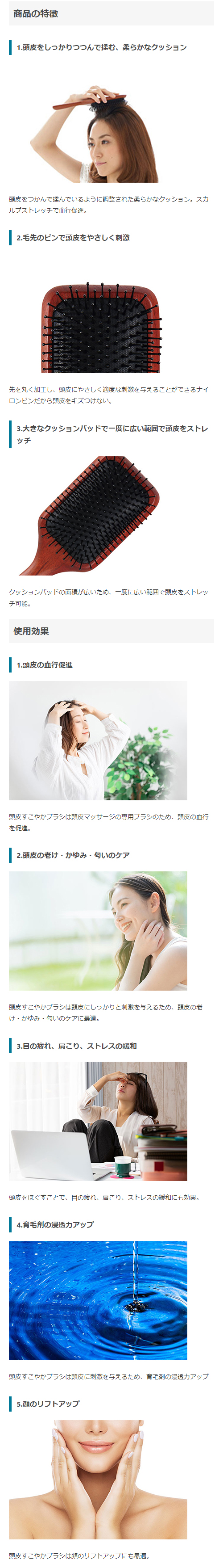 頭皮にほどよく刺激を与える長めの丸ピンを組み合わせたマッサージブラシ