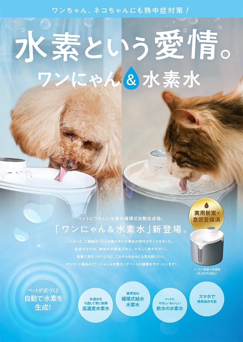 純度ある高濃度水素水でワンちゃん・猫ちゃんの 健康をサポートします!