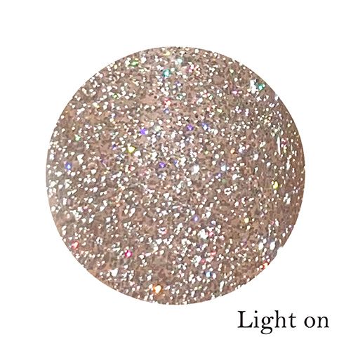 2トーンのグリッターが自然光と照明光で輝きが異なるフラッシュのグリッタージェルです。
