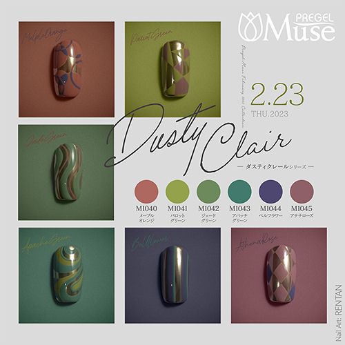 今回のミューズ第44弾「ダスティクレールシリーズ」は絶妙なくすみ感があり、差し色としても楽しめるマットなカラー6色です。