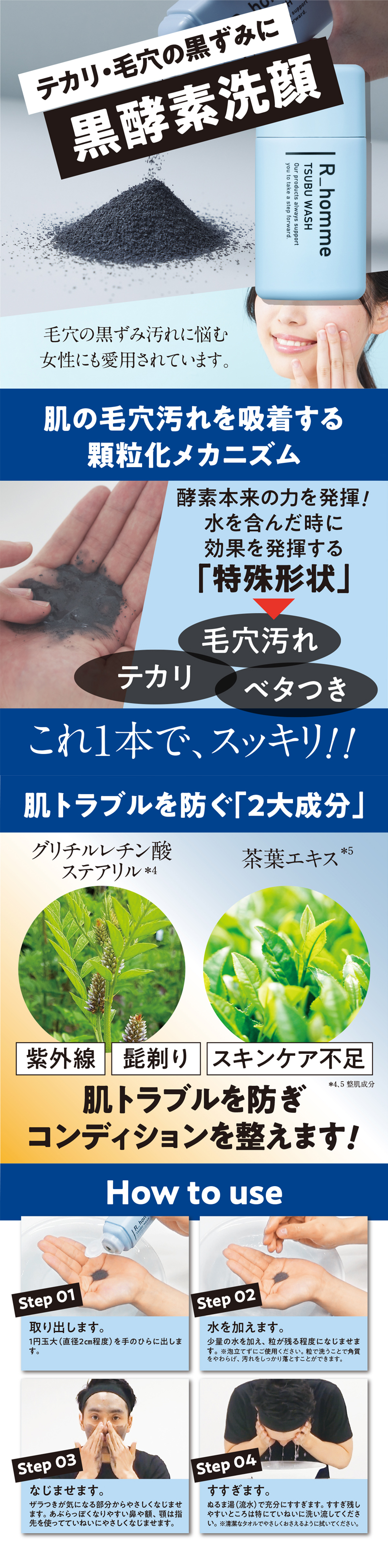 酵素の「ほぐれる粒」が、固くなった男肌を柔らかくし、皮脂汚れや毛穴の奥につまった汚れをスッキリ落とす今までにない新ジャンルの洗顔料。