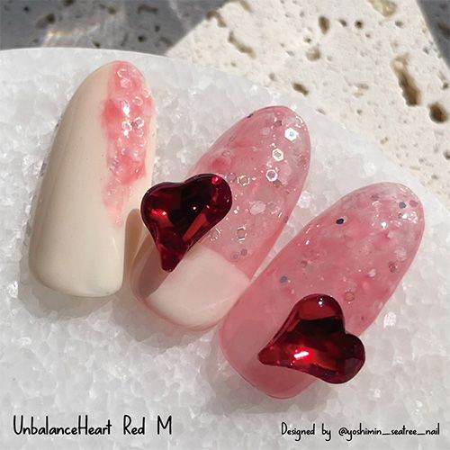 アンバランスな形のハートのガラスストーン。少し大きめのハートパーツで他のパーツともバランスよくデザインができます。