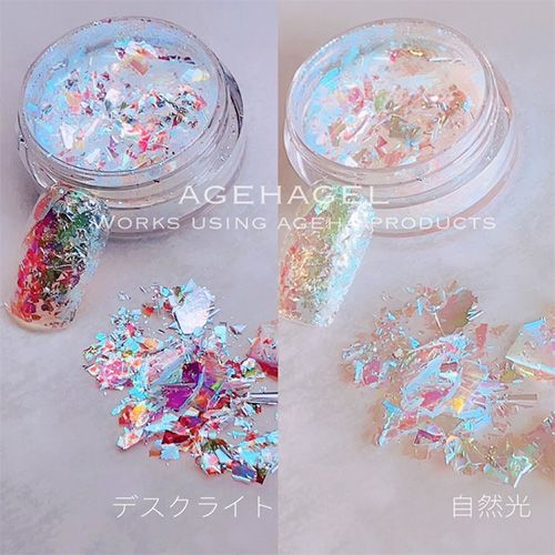 下地によって光り方が変わるフレークタイプのオーロラ箔です。