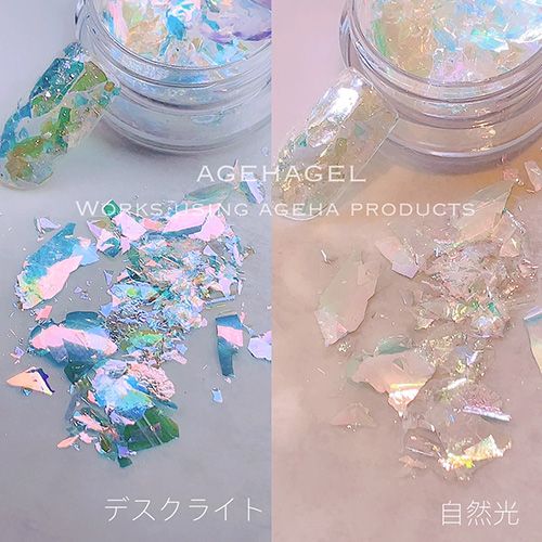 下地によって光り方が変わるフレークタイプのオーロラ箔です。
