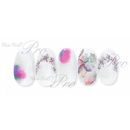 ジェルネイルと同じく紫外線でインクを硬化させる最先端のUVプリントを採用し、1点1点の絵柄の周囲を精密にカットしました。