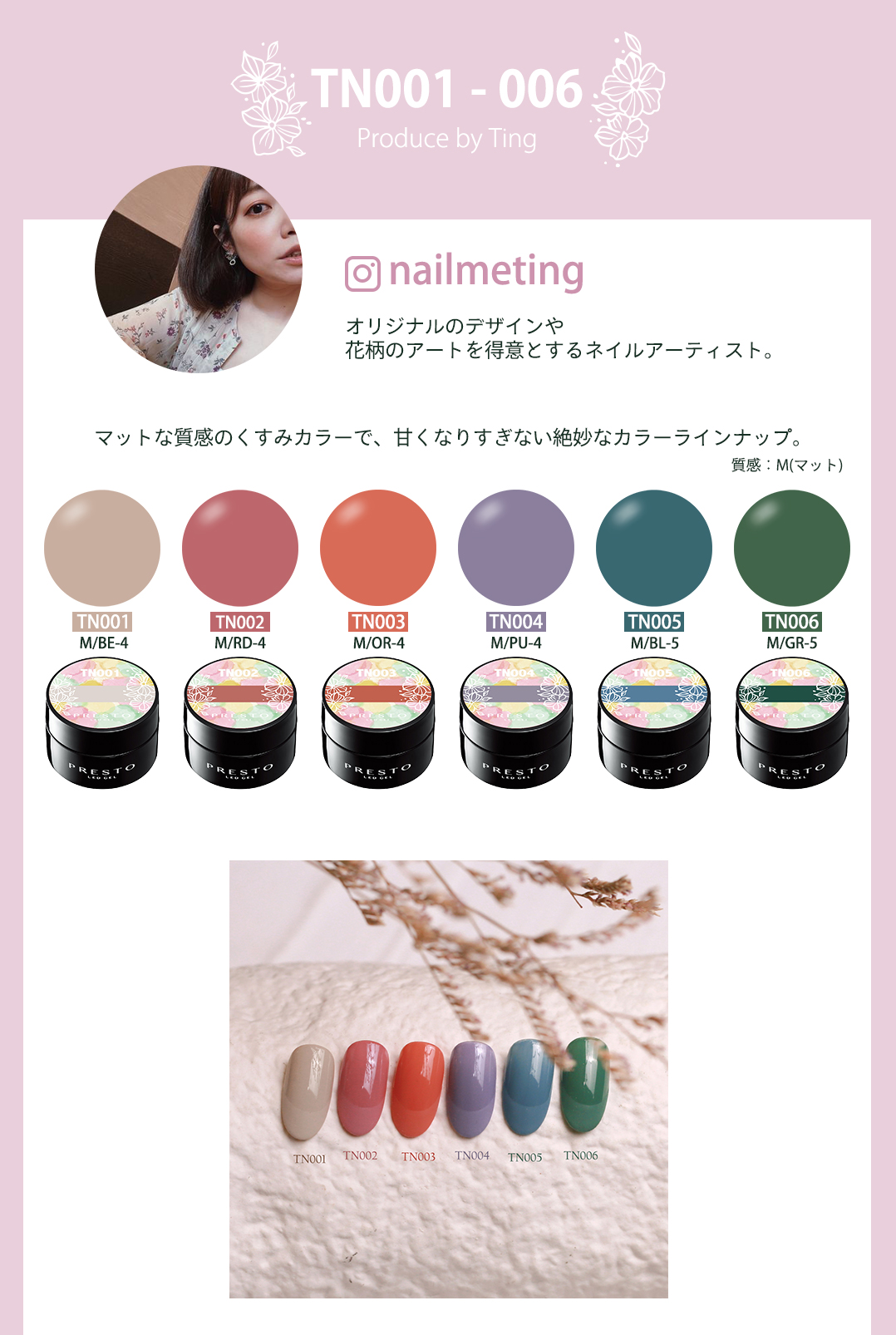 マットな質感のくすみカラーで、甘くなりすぎない絶妙なカラーラインナップ。