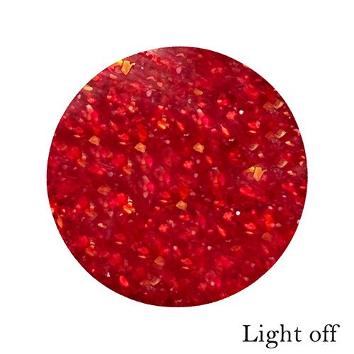 思ったよりテクスチャーが緩めでした。フレークメインのフラッシュという感じで、ギラギラ感はあんまり無いかなと思いました。でも可愛いです