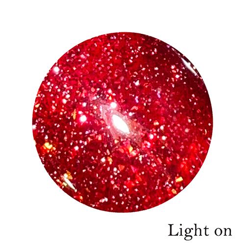 綺麗な色味の赤です。赤系のフラッシュラメ系はパーティフラッシュも持っていますが、こちらの方がラメも色味も華やかな感じです。少し透け感があるので3度塗りしてます。