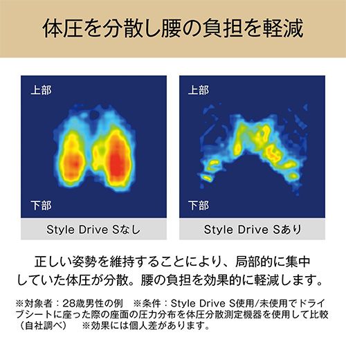 運転中の腰の負担を軽減 。座るだけで「正しい姿勢」をサポート。