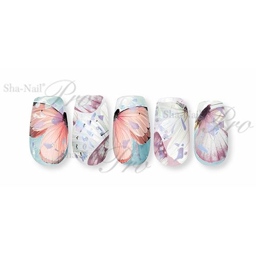 ジェルネイルと同じく紫外線でインクを硬化させる最先端のUVプリントを採用し、1点1点の絵柄の周囲を精密にカットしました。