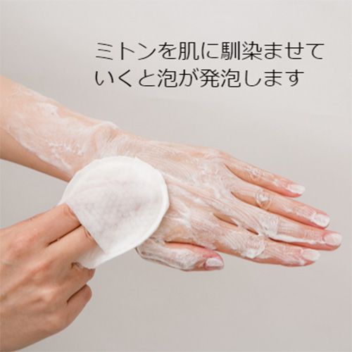 美容エキスが発泡する白麗系ミトン。肌に馴染ませていただくだけで発泡します。