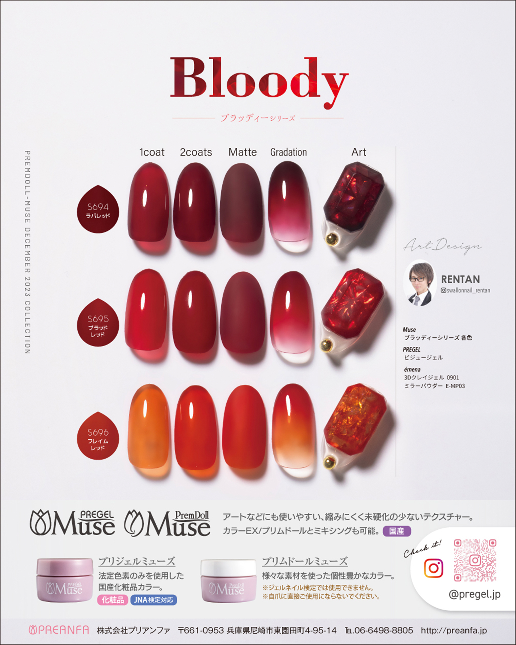 「縮まない」・「ノンストレスなレベリング」・「薄塗りも厚塗りも完全硬化」・「もちろん発色もいい」という、プリジェルの更に先を行く全く新しいカラージェルラインです。