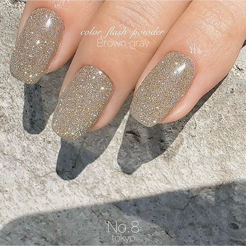 SNS上で人気のカメラなどのフラッシュによって反射し、強く光るフラッシュネイルとしてご利用いただけます。カラージェルに混ぜてお好みの色でフラッシュジェルにすることも可能です。