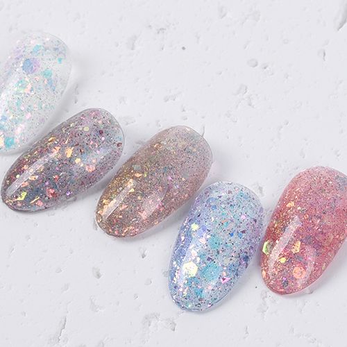 大中小のオーロラ系ホログラムとグリッターがふんだんに含まれている超キラキラのカラーシリーズ。