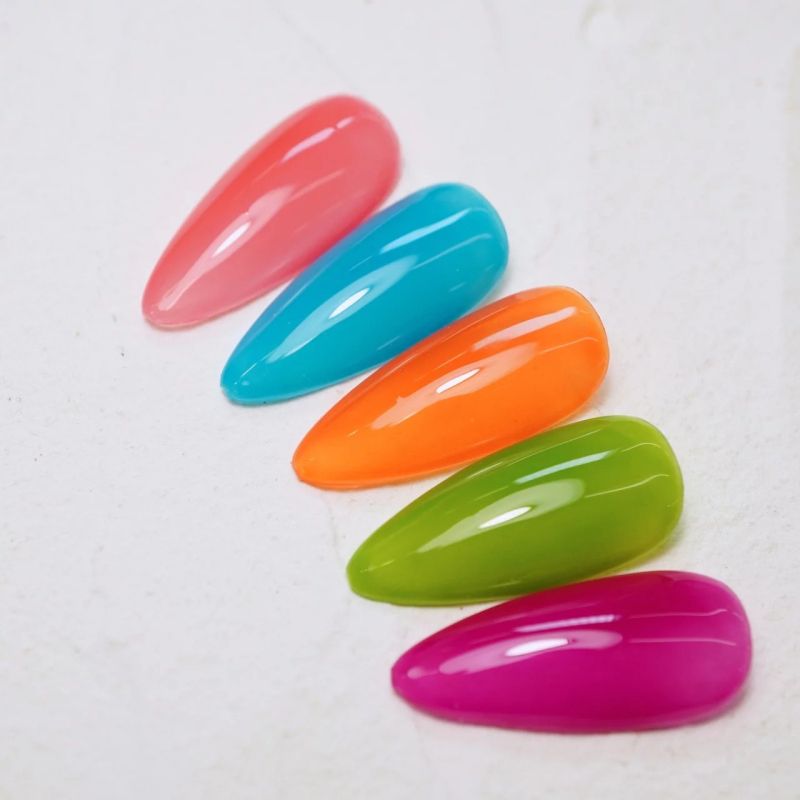 柔らかいジェルで薄く塗っても可愛いし重ねて濃く塗っても夏に使えそうなポップな感じで可愛いです!